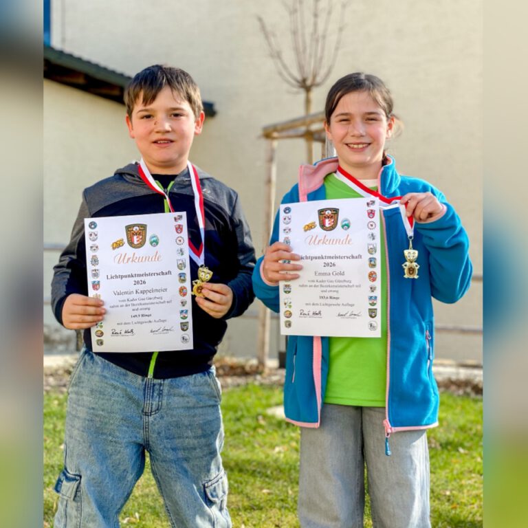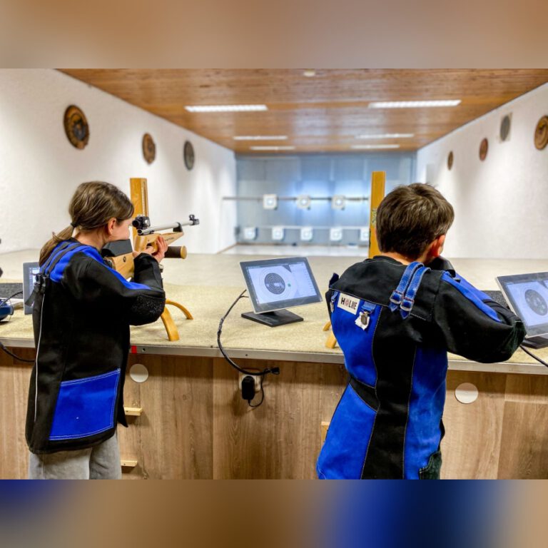 Emma belegte mit 183,6 Ringen den 4. Platz in der Wertung der Lichtgewehr-Mädels, Valentin schaffte es bei den Jungs mit 149,9 Ringen auf Platz 30.