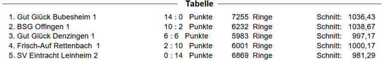 Vorrunde 5 – 2:0 gegen Offingen (1039 zu 1006 Ringe)