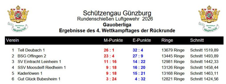 Rückrunde 4 – 3:1 gegen Riedheim (1430 zu 1416 Ringe)